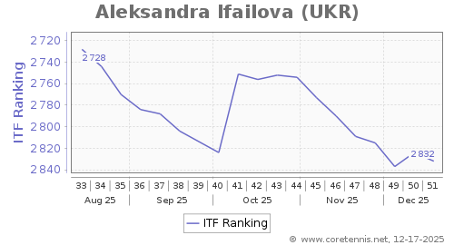 | 2832 | Aleksandra Ifailova(UKR) | 8 | 1208 | 847 | Graph |