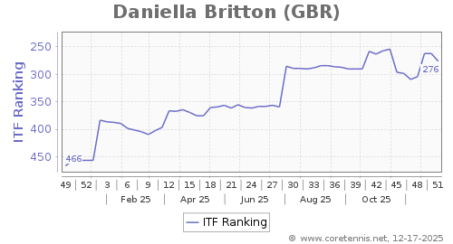 | 276 | Daniella Britton(GBR) | 14 | 180 | 82 | Graph |