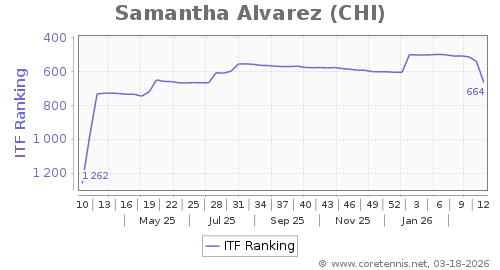 | 664 | Samantha Alvarez(CHI) | 125 | 60 | 94 | Graph |