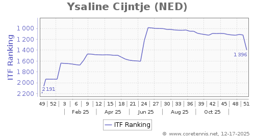 | 1396 | Ysaline Cijntje(NED) | 278 | 538 | 413 | Graph |