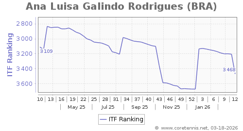| 3468 | Ana Luisa Galindo Rodrigues(BRA) | 263 | 202 | 425 | Graph |