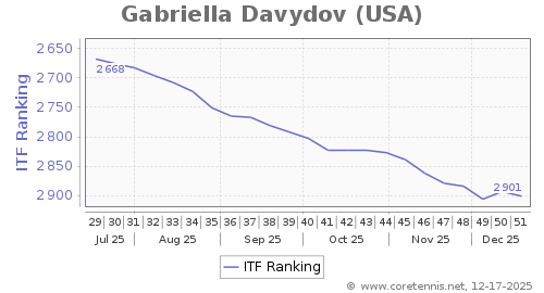 | 2901 | Gabriella Davydov(USA) | 8 | 1139 | 778 | Graph |