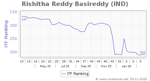 | 294 | Rishitha Reddy Basireddy(IND) | 45 | 15 | 94 | Graph |