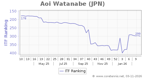 | 399 | Aoi Watanabe(JPN) | 89 | 18 | 181 | Graph |