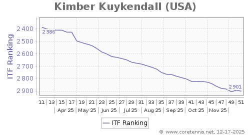 | 2901 | Kimber Kuykendall(USA) | 8 | 1139 | 279 | Graph |