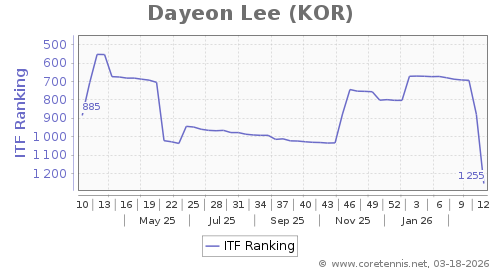 | 1255 | Dayeon Lee(KOR) | 376 | 452 | 232 | Graph |