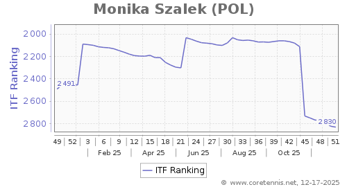 | 2821 | Wiktoria Sienko(POL) | 8 | 78 | 245 | Graph |