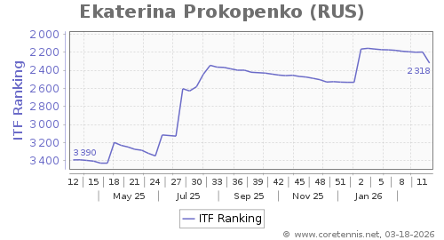 | 2150 | Tereza Tsybulska(UKR) | 207 | 518 | 88 | Graph |