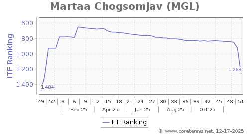 | 1263 | Martaa Chogsomjav(MGL) | 342 | 339 | 504 | Graph |