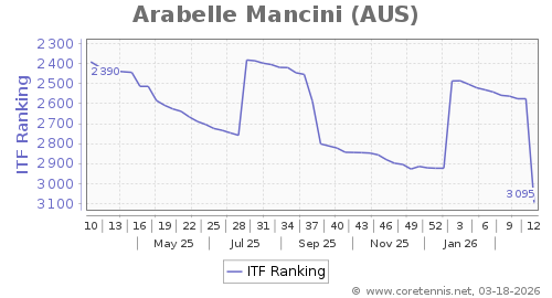 | 3095 | Arabelle Mancini(AUS) | 520 | 172 | 294 | Graph |