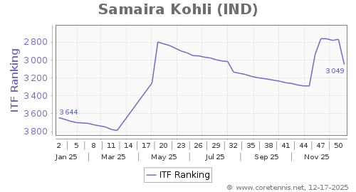 | 3049 | Samaira Kohli(IND) | 280 | 991 | 98 | Graph |
