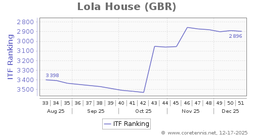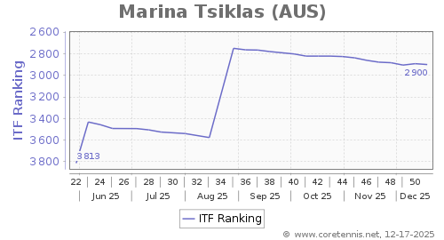 | 2900 | Marina Tsiklas(AUS) | 8 | 1140 | 592 | Graph |