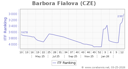 | 2997 | Barbora Fialova(CZE) | 271 | 1083 | 1185 | Graph |