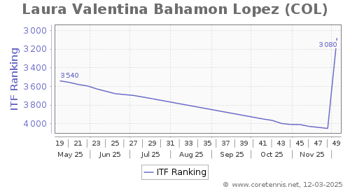 | 3080 | Laura Valentina Bahamon Lopez(COL) | 972 | 960 | 547 | Graph |