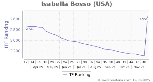 | 2551 | Isabella Bosso(USA) | 736 | 1489 | 412 | Graph |