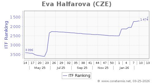 | 1474 | Eva Halfarova(CZE) | 235 | 1022 | 338 | Graph |