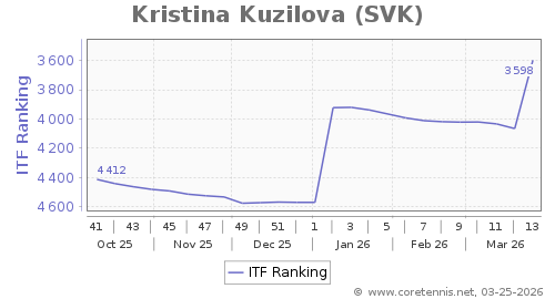| 3598 | Kristina Kuzilova(SVK) | 467 | 971 | 1786 | Graph |