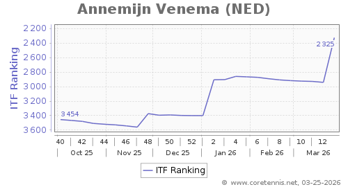 | 2325 | Annemijn Venema(NED) | 616 | 1074 | 513 | Graph |