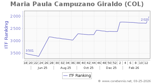 | 2020 | Maria Paula Campuzano Giraldo(COL) | 266 | 599 | 208 | Graph |