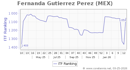 | 1053 | Fernanda Gutierrez Perez(MEX) | 313 | 174 | 133 | Graph |