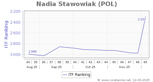 | 2293 | Nadia Stawowiak(POL) | 680 | 1747 | 1671 | Graph |