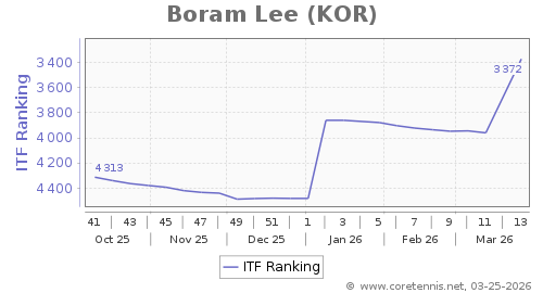 | 3372 | Boram Lee(KOR) | 694 | 1110 | 1560 | Graph |