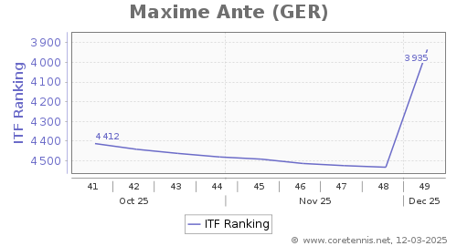 | 3935 | Maxime Ante(GER) | 597 | 105 | 29 | Graph |