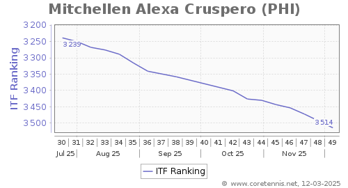 | 3514 | Mitchellen Alexa Cruspero(PHI) | 1019 | 526 | 450 | Graph |