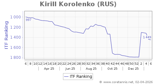 | 1449 | Kirill Korolenko(RUS) | 10 | 341 | 212 | Graph |