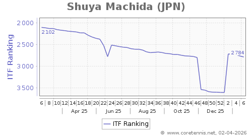 | 2784 | Shuya Machida(JPN) | 23 | 818 | 159 | Graph |