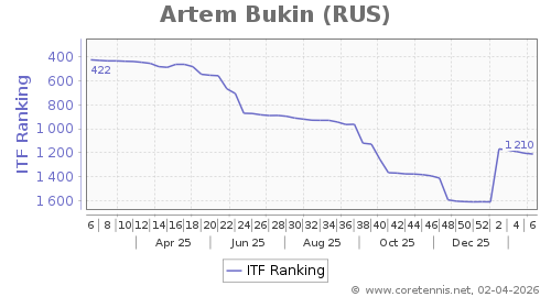 | 1210 | Artem Bukin(RUS) | 7 | 400 | 283 | Graph |