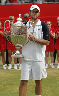 | Andy Roddick also nearly came unstuck, against Britain’s 117th-ranked Alex Bogdanovic. He was two points from defeat at one stage, and was saved from going match point down by an appeal to Hawk-Eye. Bogdanovic, who once incurred the wrath of the LTA by declaring he was too tired to join the Davis Cup squad, appears to have benefited from the advice of Federer’s former coach, Peter Lundgren, who is now employed by the LTA. Roddick forecast the top 40 for him. And so to the final. It is unusual for a player to win a match without breaking serve, and for a player to lose after breaking serve and not giving up his own, but that is what happened as Roddick edged through 4-6, 7-6, 7-6. Mahut played an almost flawless match. He was nimble and covered the net well, and his 21 aces matched the 24 from Roddick. The American held just one break point, at 4-4 in the first set, but Mahut cleverly struck a low forehand volley to force an error. Mahut then earned the only break of the match to claim the set when Roddick’s attempt to thread a winner down the line went wide. Games went easily with serve in the second set, before Roddick faced a match point at 7-6 in the tiebreaker. But Mahut netted a forehand and then made another forehand error to drop the tiebreaker 9-7. The final set was equally close, before Roddick finally took control in the tiebreak, winning it 7-2. So a fantastic week for Mahut, the best of his career. But now it’s back to the grind as he competes in the qualifying competition for Wimbledon. |