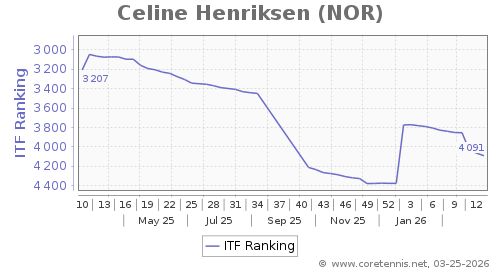 | 4091 | Celine Henriksen(NOR) | 26 | 285 | 2279 | Graph |