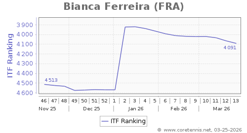 | 4091 | Bianca Ferreira(FRA) | 26 | 478 | 2279 | Graph |