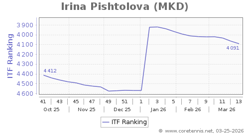 | 4091 | Irina Pishtolova(MKD) | 26 | 478 | 2279 | Graph |