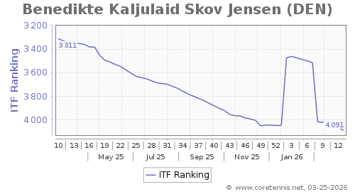 | 4091 | Benedikte Kaljulaid Skov Jensen(DEN) | 26 | 43 | 2279 | Graph |