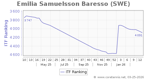 | 4091 | Emilia Samuelsson Baresso(SWE) | 26 | 478 | 2279 | Graph |