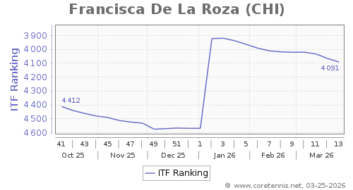 | 4091 | Francisca De La Roza(CHI) | 26 | 478 | 2279 | Graph |