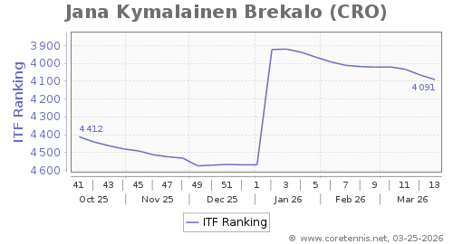| 4091 | Viktorie Krejcikova(CZE) | 26 | 479 | 2279 | Graph |