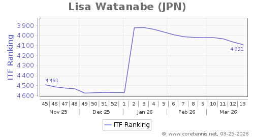 | 4091 | Lisa Watanabe(JPN) | 26 | 478 | 2279 | Graph |