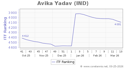 | 4091 | Avika Yadav(IND) | 26 | 478 | 2279 | Graph |