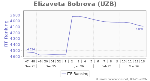 | 4091 | Naz Ada Eligur(TUR) | 26 | 1524 | 2495 | Graph |